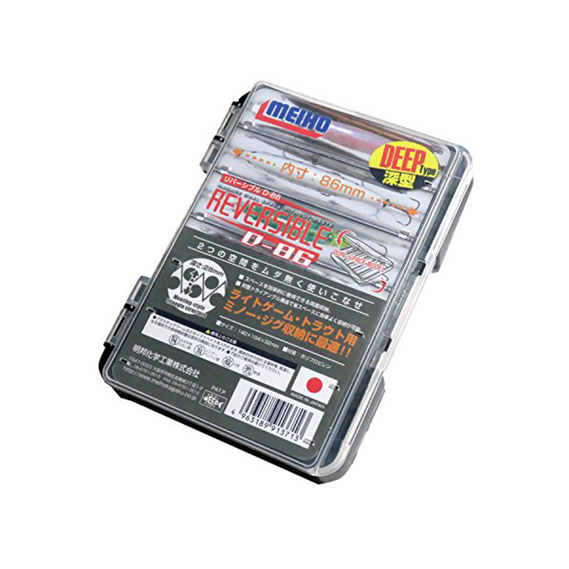 Κασετίνα διπλής όψεως της επαναστατικής σειράς MEIHO Reversible. Είναι ιδανικό για τη φύλαξη τεχνητών δολωμάτων, τα οποία αποθηκεύονται με τέτοιο τρόπο ώστε να μη χτυπιούνται μεταξύ τους και να μη μπερδεύονται τα αγκίστρια ή οι σαλαγκιές τους. Οι θήκες του έχουν τριγωνικό σχήμα για την πλήρη εκμετάλλευση του χώρου. Μετά τη χρήση μπορεί εύκολα να πλυθεί καθώς διαθέτει αγωγό αποστράγγισης.