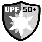 Διαθέτει προστασία από τον ήλιο UPF 50+ που είναι η μέγιστη βαθμολογία προστασίας, για μια σειρά ακτινοβολίας UVA και UVB ευρέος φάσματος, που μπορεί να επιτευχθεί για υφάσματα. Το UPF 50+ σημαίνει πάνω από 98% προστασία από των επιβλαβών ακτινών UV (Υπεριώδης ακτινοβολία). Διαθέτει 8 fiberglass ακτίνες με διάμετρο Ø5.00mm οι οποίες παρέχουν βελτιωμένη ανθεκτικότητα και ευκαμψία. Επίσης παρέχουν και εκτεταμένη προστασία σε συνθήκες ανέμου για καλύτερη απελευθέρωση αέρα και για να αποφευχθεί η αντιστροφή του υφάσματος. Διαθέτει μεγάλο αεραγωγό που βοηθά στην διαφυγή του αέρα από το εσωτερικό της. Αυτό την καθιστά μία από τις σταθερότερες ομπρέλες της αγοράς στον άνεμο, χωρίς να χρειαστεί να την ‘’κυνηγάμε’’ στην παραλία. Το ύφασμα της ομπρέλας είναι κατασκευασμένο από Polyester PU 180gr/ m2 silver coating, ασημί επίστρωση εσωτερικά. H επίστρωση PU προσδίδει στο ύφασμα αδιαβροχοποίηση, επιπλέον αντίσταση στην θερμότητα και το φως, μεγάλο βαθμό αποχρωμάτισης καθώς και ανθεκτικότητα, δίνοντάς του τη δυνατότητα να αντέχει σε βαρύτερες ριπές ανέμου κλπ. Ο μεταλλικός ιστός της ομπρέλας, ο οποίος αποτελείται από δύο άξονες για ευκολία στην μεταφορά, προσδίδειBστιβαρότητα και είναι κατασκευασμένος από κράμα σιδήρου με εξωτερική διάμετρο Ø32μμ και πάχος τοιχωμάτων 1,0μμ. Ο ιστός βάφεται ηλεκτροστατικά έτσι ώστε να εξασφαλιστεί μέγιστη προστασία της επιφάνειας του από την διάβρωση. Στο πάνω μέρος του ιστού υπάρχει μεταλλικός μηχανισμός κλήσης. από κράμα σιδήρου. Aυτός ο μηχανισμός επιτρέπει στην ομπρέλα να γέρνει χειροκίνητα, στην επιθυμητή γωνία τόσο για σκίαση όσο και για προστασία από τον άνεμο. Η ασημί επένδυση δίνει το μεγαλύτερο μέρος της προστασίας από τις επικίνδυνες ακτίνες UV. Στα τελειώματα των ακτινών υπάρχουν πλαστικά καλύμματα για την αποφυγή τραυματισμών από ατύχημα.