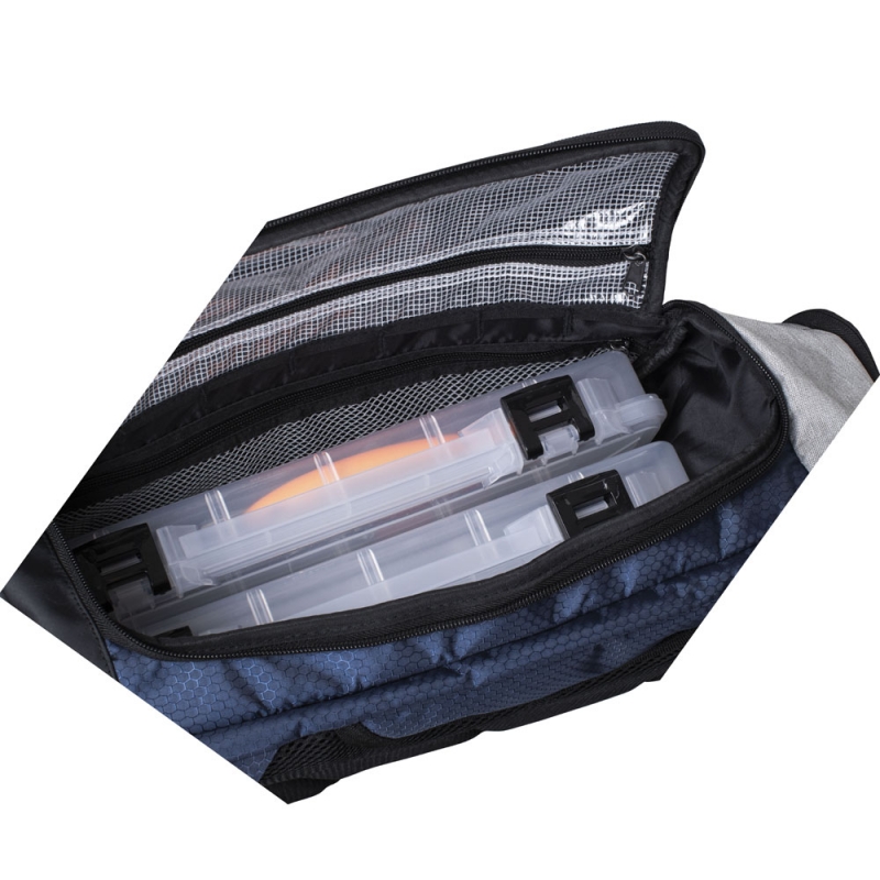 Σακίδιο πλάτης πολλαπλών χρήσεων, ιδανικό για ημερήσιες εκδρομές ή καθημερινή χρήση. Διαθέτει ευρύχωρη κύρια θήκη με εύκολη πλαϊνή πρόσβαση και εσωτερικές τσέπες, που μπορεί να χωρέσει δύο κασετίνες διαστάσεων περίπου 35 x 22 x 5cm (δεν περιλαμβάνονται). Η πίσω τσέπη έχει μαλακή επένδυση και μπορεί να χωρέσει laptop έως και 15’’. Στο πάνω μέρος έχει άλλη θήκη με φερμουάρ για μικρότερα αντικείμενα και στο πλάι θήκη για μπουκάλι. Έχει επίσης λουριά και θέσεις όπου στερεώνονται εργαλεία, καλάμια, απόχες κ.λπ. Το πίσω μέρος του σακιδίου αποτελείται από διαπνέον ύφασμα, καθώς επίσης και τα λουριά ώμου, τα οποία διαθέτουν και θέσεις όπου μπορούν να προσαρμοστούν εργαλεία. Διαθέτει φερμουάρ YKK.