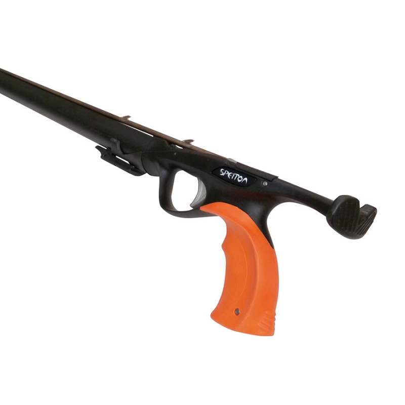 Νέο λαστιχοβόλο ψαροντούφεκο υψηλών προδιαγραφών από τη Spetton. Ο σχεδιασμός του είναι αποτέλεσμα πολυετούς εμπειρίας και συνεργασίας πολλών ειδικών του υποβρυχίου ψαρέματος από όλο τον κόσμο. Διατίθεται με ένα εφεδρικό τακούνι λαβής, ανοξείδωτη κασέτα με μηχανισμό σίγασης και σπαστή κεφαλή κλειστού τύπου. Η νέα του λαβή παρέχει στο χρήστη ασύγκριτη άνεση και σταθερότητα. Η σκανδάλη είναι ενσωματωμένη μέσα στη λαβή και πατιέται με μια μόνο μικρή κίνηση του αντίχειρα. Στο πάνω μέρος της λαβής βρίσκεται ένα ροδάκι που ρυθμίζει εύκολα και γρήγορα την ευαισθησία της σκανδάλης και στο πλάι υπάρχει ο μηχανισμός απελευθέρωσης της πετονιάς, ο οποίος λειτουργεί σε άψογο συγχρονισμό με τη σκανδάλη και τη βέργα. Ο σωλήνας του έχει μια εσοχή που λειτουργεί ως οδηγός για τη βέργα, βελτιώνοντας έτσι τη βολή, παρέχοντας μεγαλύτερη ακρίβεια και σταθερότητα και καλύτερη πλευστότητα στη βέργα. Διαθέτει βέργα TQ-Spetton 6.5mm, λάστιχα Spetton Black Premier 18mm και καμπάνα D-Spetton. Περιλαμβάνονται σύστημα τάνυσης, συνδέσεις και πετονιά.- Μήκος Σωλήνας: 75