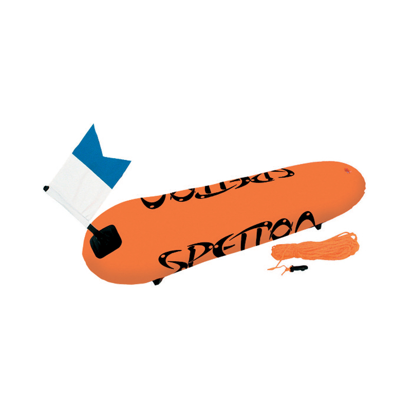 Σημαδούρα δύτη, σε οβάλ σχήμα, με διαστάσεις. Είναι σταθερή και με μεγάλη ικανότητα επίπλευσης. Διαθέτει έξι ελαστικά γαντζάκια και ακόμη δύο για έλξη. Διατίθεται με σχοινί και κλιπ παραμάνα.