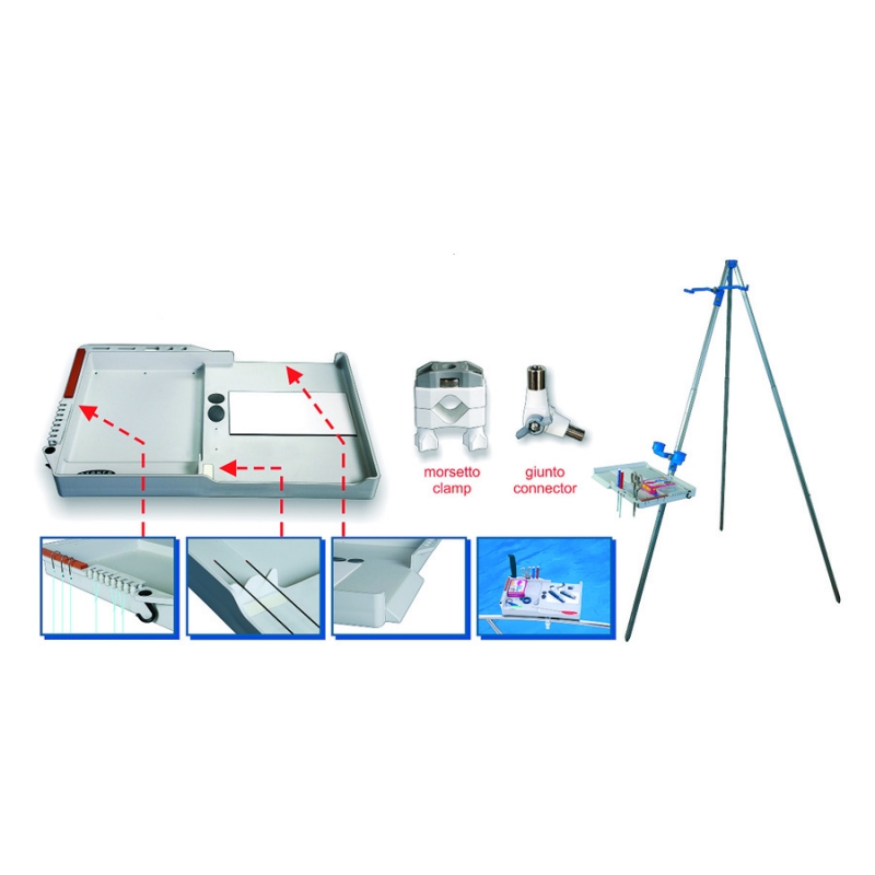 Τραπεζάκι εργασίας ειδικά σχεδιασμένο για να καλύψει όλες τις ανάγκες των ψαράδων. Σχεδιασμένο από ανθεκτικό πλαστικό με στρογγυλεμένες γωνίες και άκρες. Εργονομική σχεδίαση, με πρακτικές θέσεις που κρατούν σταθερά διάφορα κουτιά δολωμάτων, εργαλεία, αρματωσιές και αγκίστρια. Με διαστάσεις 39 x 28cm., είναι ένας μικρός αλλά τέλεια οργανωμένος πάγκος εργασίας. Διατίθεται με βιδωτή βάση που προσαρμόζεται σε σκαρμό ή τρίποδα και ρυθμιζόμενο σύνδεσμο.