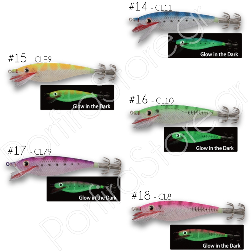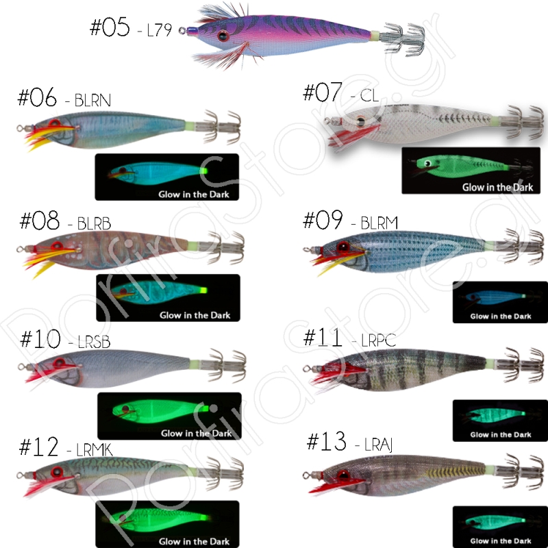 Καλαμαριέρες με σώμα από σκληρή και ανθεκτική ρητίνη ABS καλυμμένο με κυψελωτό ιριδίζον πανί που αντανακλά το φως της επιφάνειας δημιουργώντας έτσι προκλητικές λάμψεις. Ταυτόχρονα το σώμα τους είναι φωσφόρου ώστε να είναι ευδιάκριτες από τα καλαμάρια στο σκοτάδι. Διαθέτουν μεγάλα κόκκινα 3D μάτια, στριφτάρι rolling και πτερύγια από φτερό.